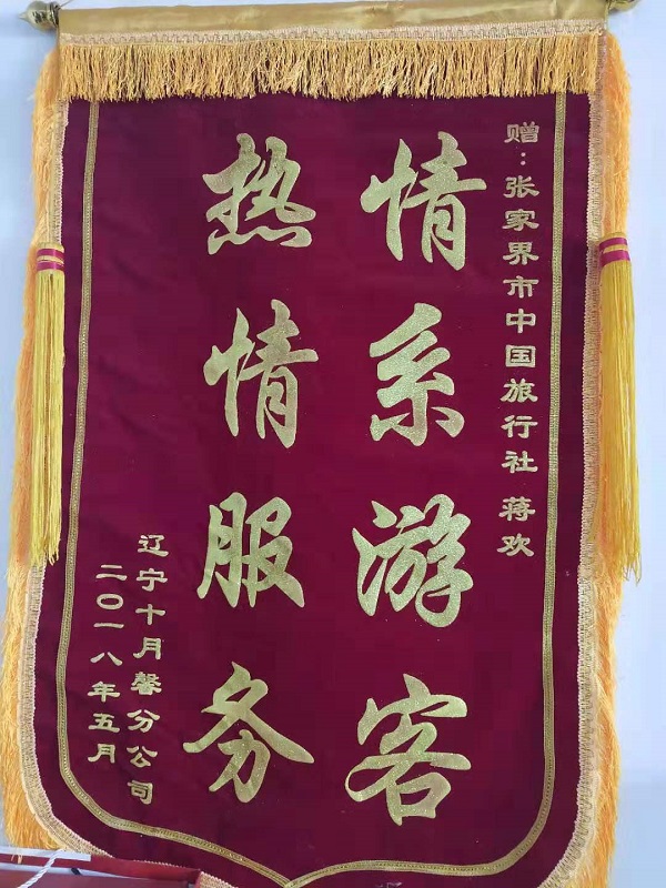 遼寧十月馨分公司旅游團52人贈送好評錦旗