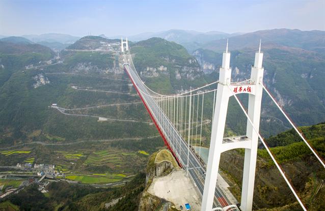 地形險要:橋面到峽谷底高差達355米,兩岸索塔位置距懸崖邊緣僅70至100米。