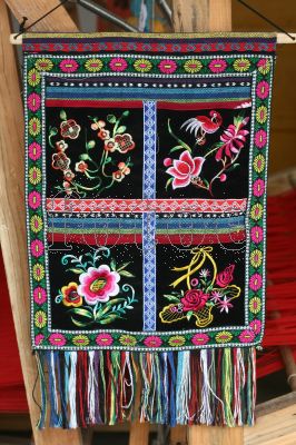 土家錦的品種有香袋、服飾、旅游袋 、沙發套、坐墊、室內裝飾、被面、披甲、背袋等,美不勝收。